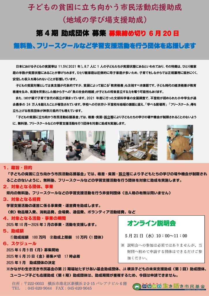 6月9日(月)より、子どもの貧困に立ち向かう市民活動応援助成の募集を開始いたします。