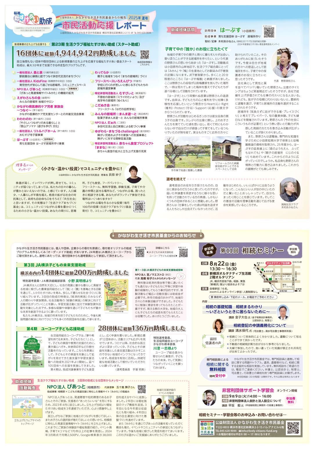 このホームページに記載の記事 ・ 写真・イラストなどの無断転載を禁じます。 Copyright(C) 2017. かながわ生き活き市民基金 All rights reserved.