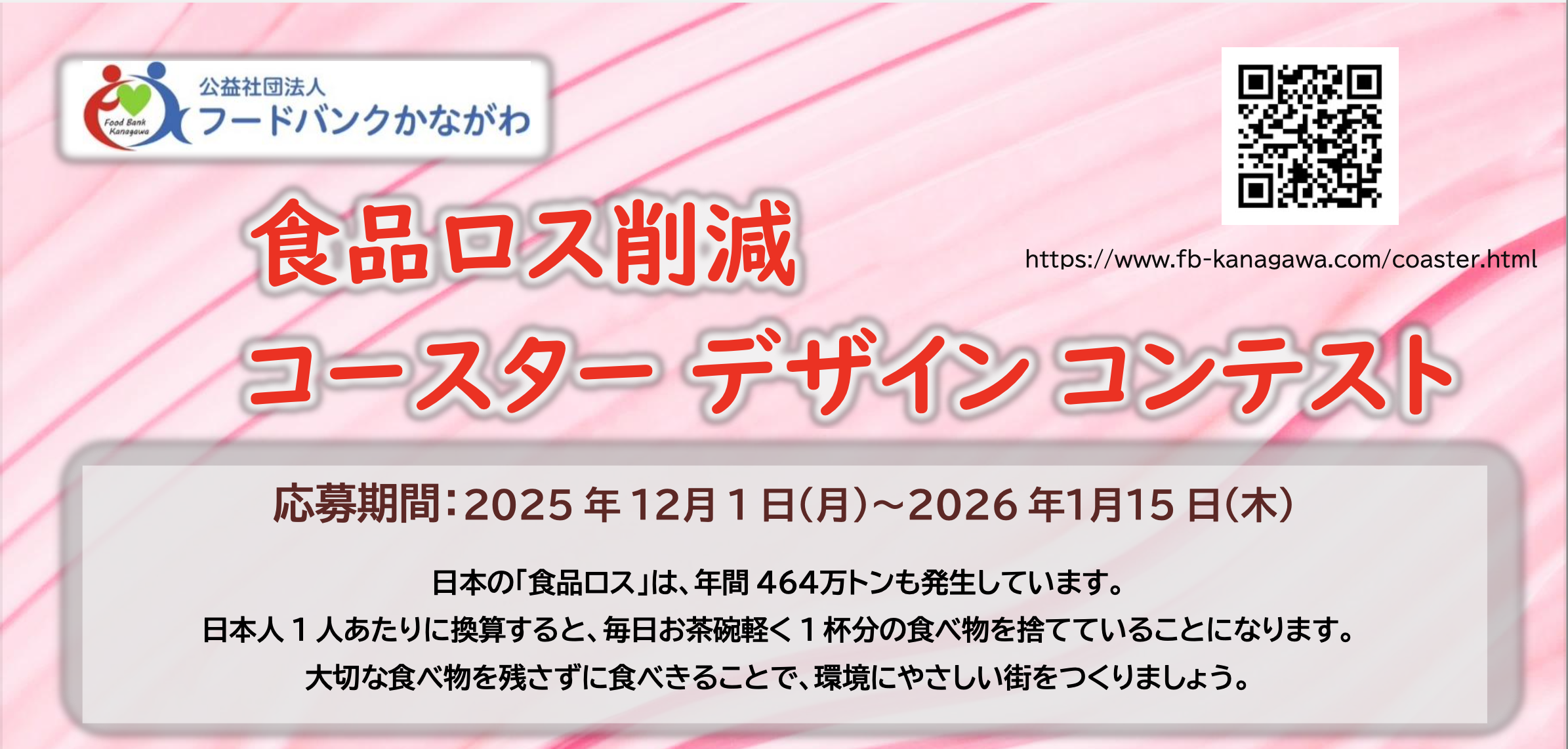 連携団体である(公社)フードバンクかながわで行います、「食品ロス削減コースター デザイン コンテスト」で食品ロス削減コースターデザインを募集します。