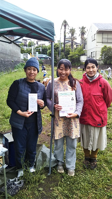 5月21日の午後3時前、藤沢市大鋸にある「第406号緑のひろば」に小学生とお母さんたちが三々五々集まり始めた。原っぱはテニスコート2面くらいの広さ。あいにくの天気で、しかも冷たい霧雨が時折降ってくる。それにも拘わらず、20人を超える子どもたちが自転車などで次々とやって来る。お母さんたちも15人を超えているだろうか。