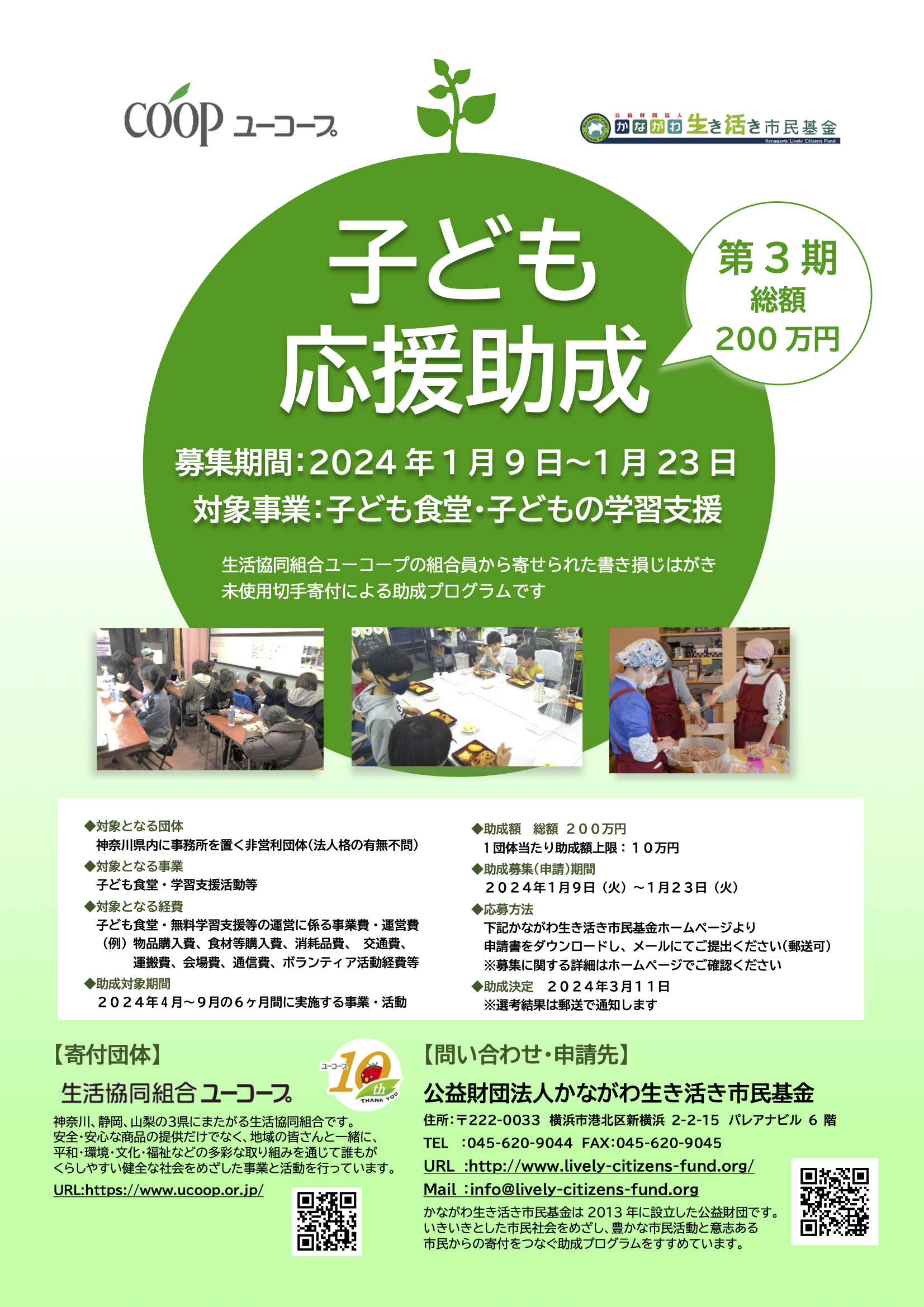 ユーコープ「子ども応援助成(第3期)」の募集(1月23日17時締切)<締め切りました>