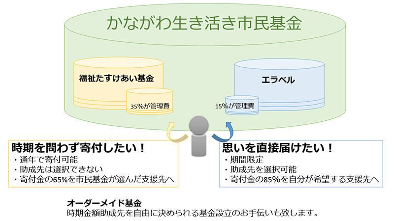 かながわ生き活き市民基金とは、ふたつの助成事業を柱とする公益財団法人です。